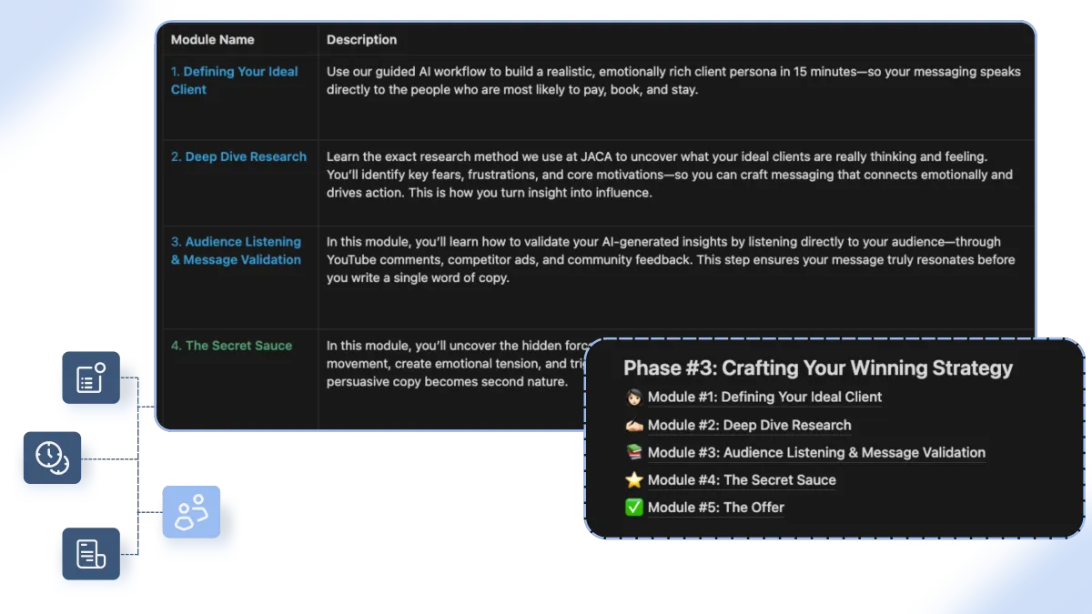 You don’t need a perfect niche to start. In fact, we’ll help you clarify your positioning inside the system so you stand out and attract the kinds of clients you want to work with.