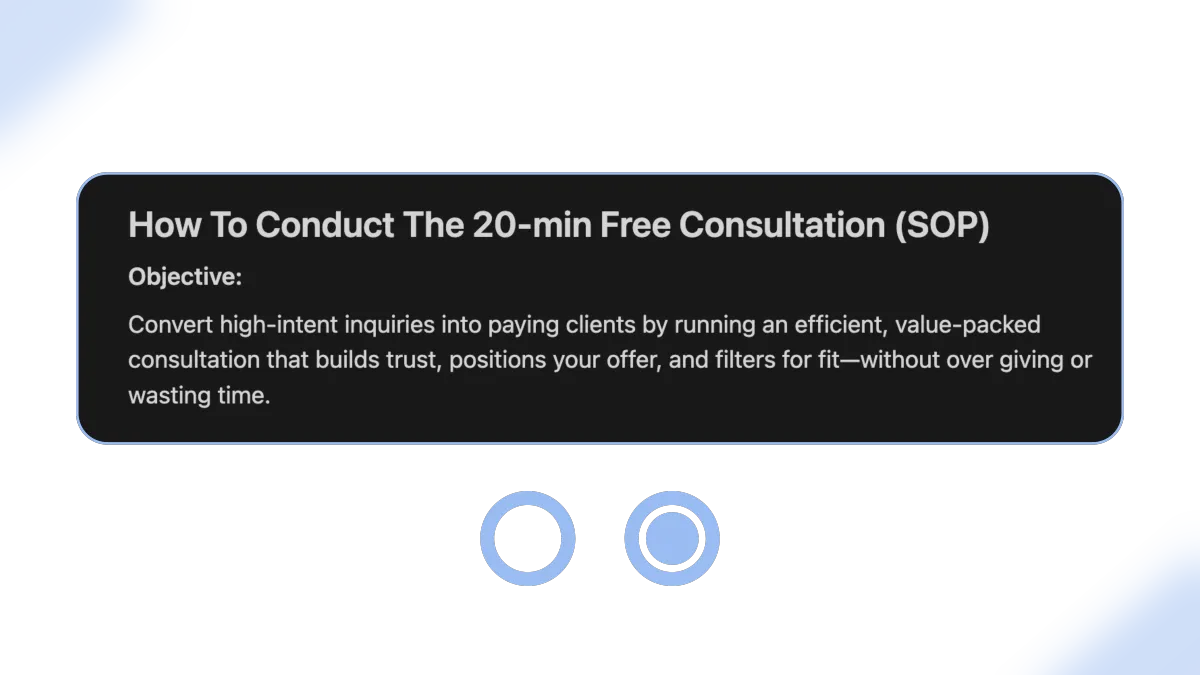 You’ll get our exact plug-and-play consultation process that walks you through every step of the call — from intro to close — so conversions happen naturally.