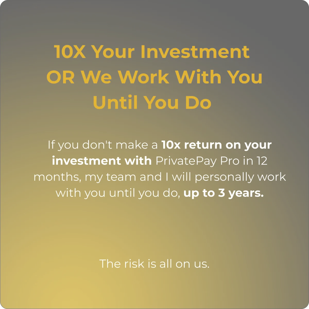 If you don't 10x your investment, we'll personally work with you until you do